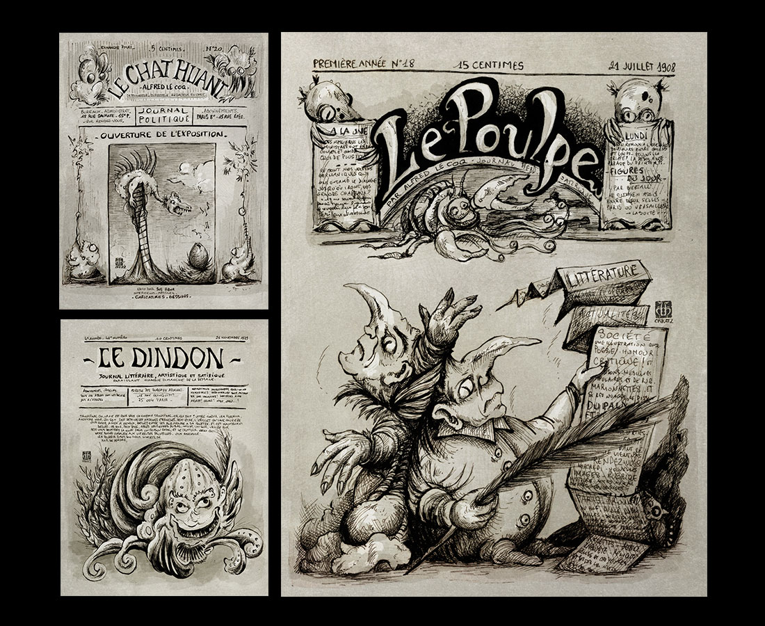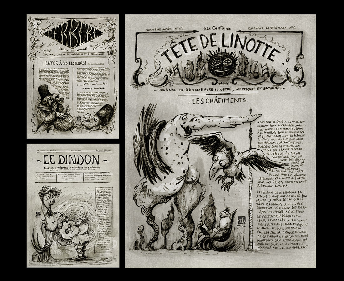 Nous avons réalisé la typoghraphie du film, ainsi que des illustrations pour les décors, inspirées des journaux satiriques de l’époque.