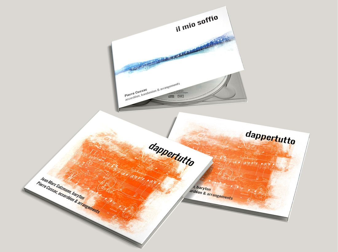 Visuels, maquette et photographies réalisés pour les deux disques du projet du duo Jean-Marc Salzmann – Pierre Cussac :