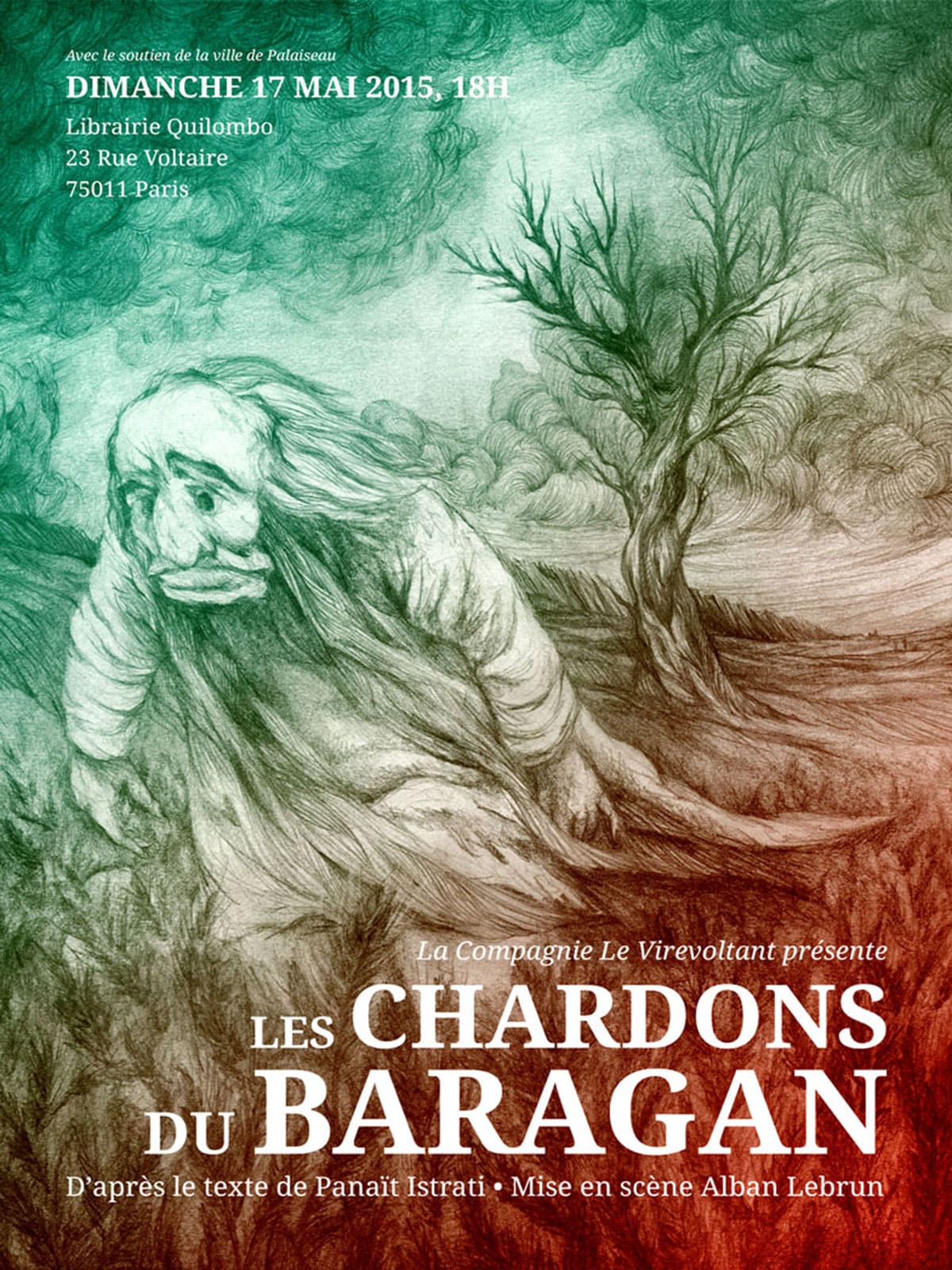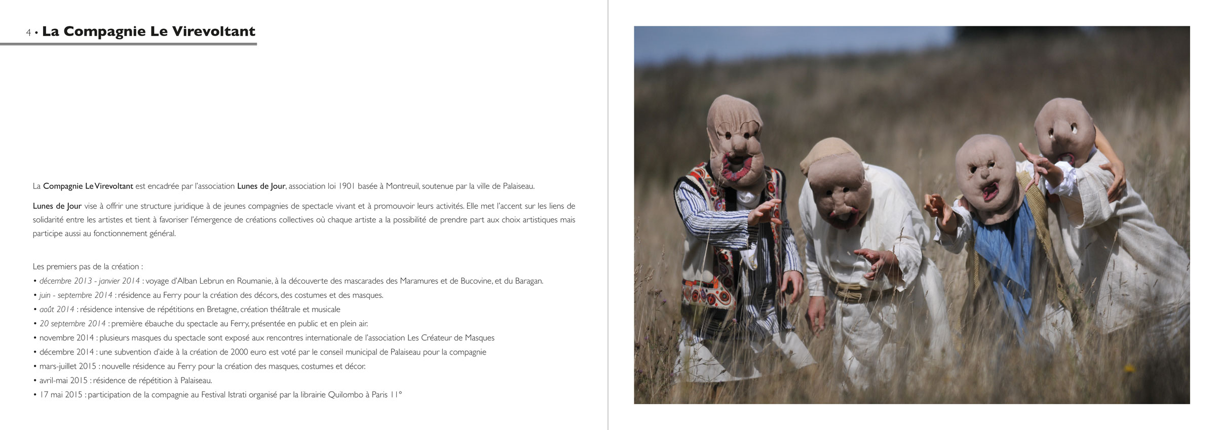 La Compagnie Le Virevoltant explore l’oeuvre de l’auteur roumain Panait Istrati Comme sur des Chardons Ardents à travers le jeu de masque, inspiré des masques en tissu de la tradition Roumaine.